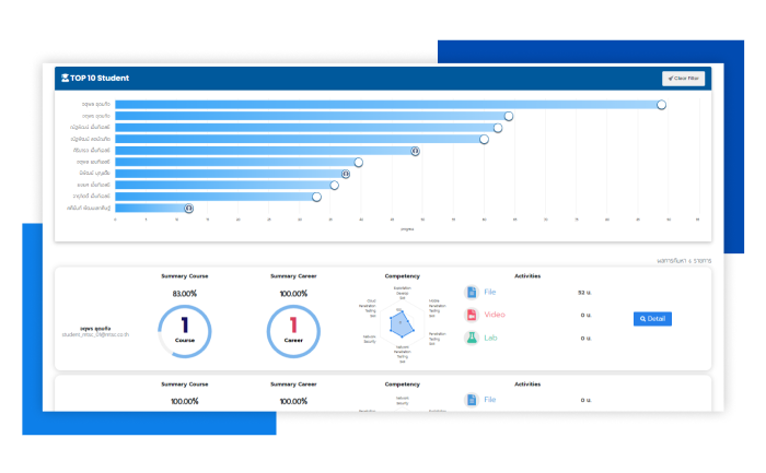 และสามารถออกรายงานเพื่อเป็นประโยชน์ในการพัฒนาทักษะต่างๆ ต่อไปในอนาคต